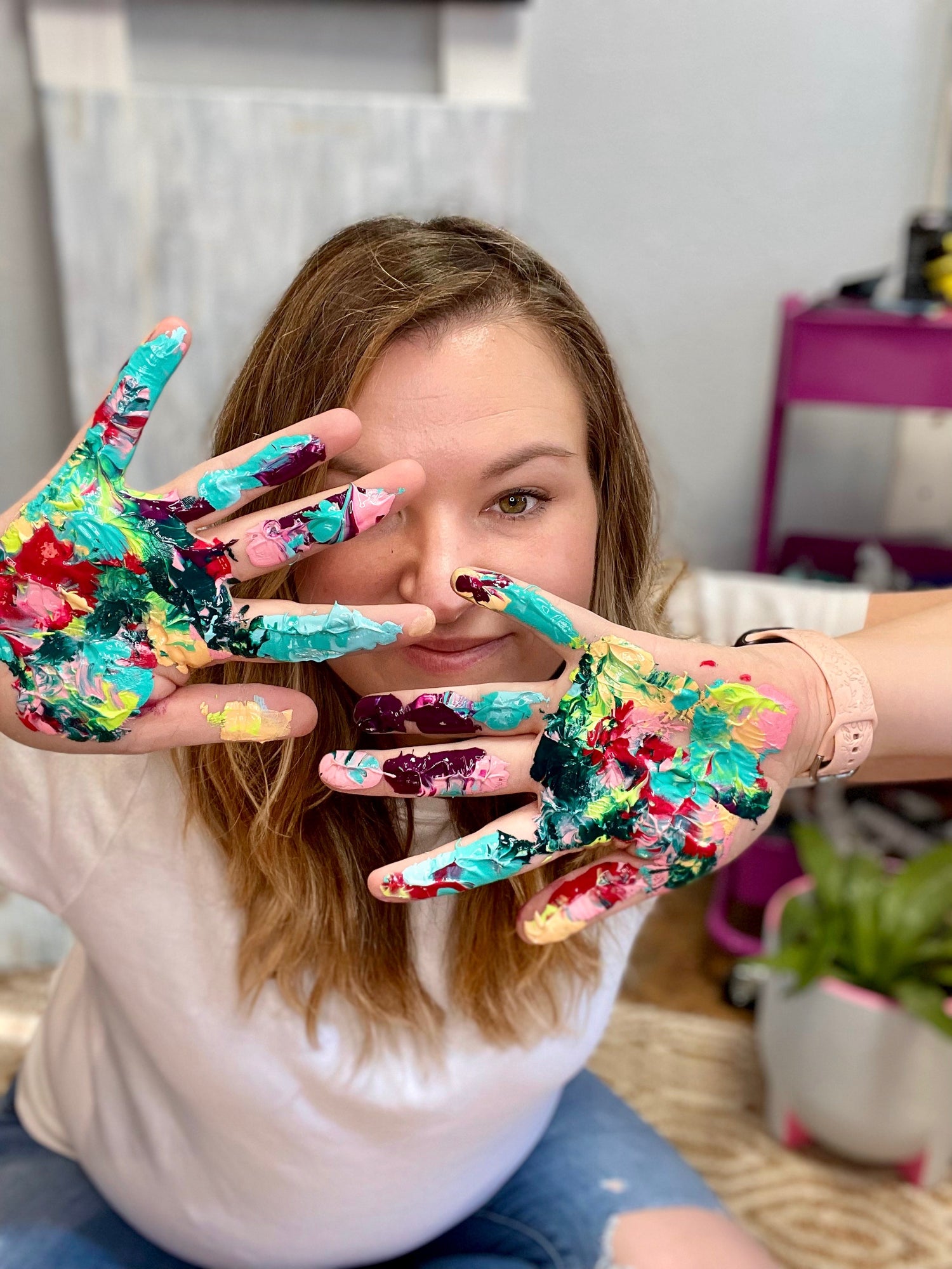 As a wife and mom of 3 under the age of 6, I love that I can work from a home studio in Arlington, Texas, and have them with me. Inspiring the next generation to get messy and creative brings me joy! With three little helpers and a few furry friends, daily life is chaotic, beautiful, and a bit messy!